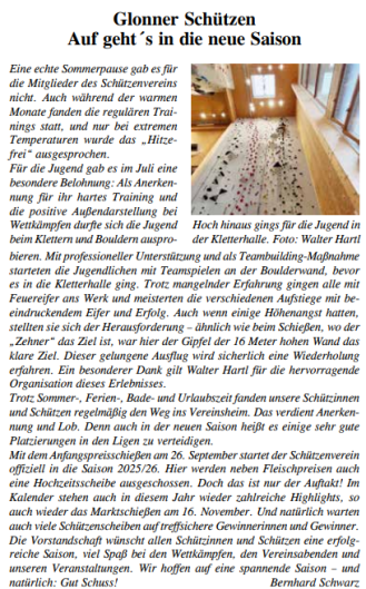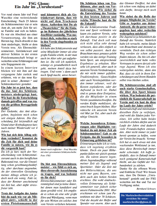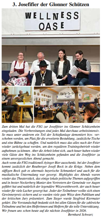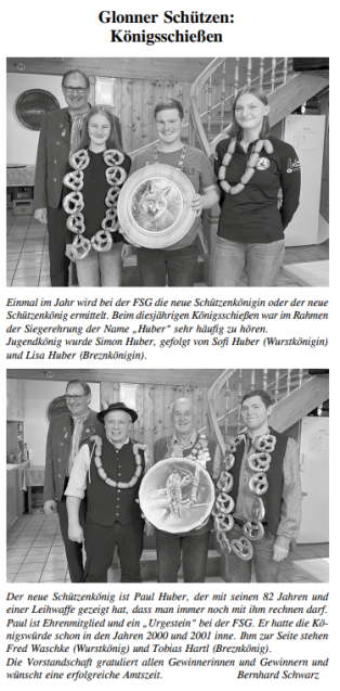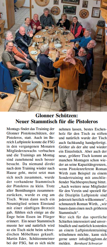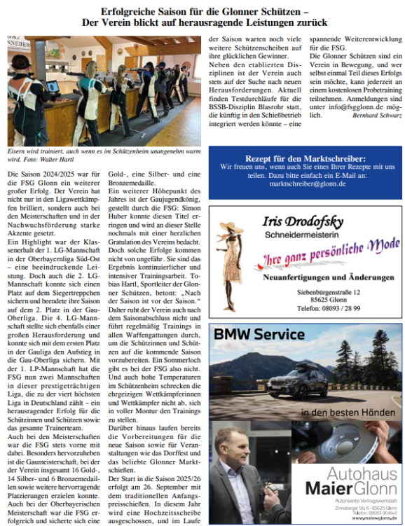Regelmäßig erscheinen Artikel über unseren Verein im Glonner Marktschreiber und im Merkur.